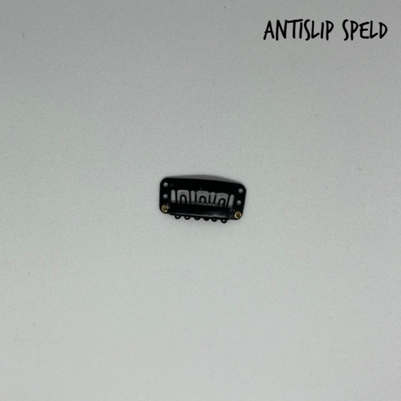 Een clip met kleine tandjes. In de maten 2cm t/m 5cm. Klemt zich vast in het haar.