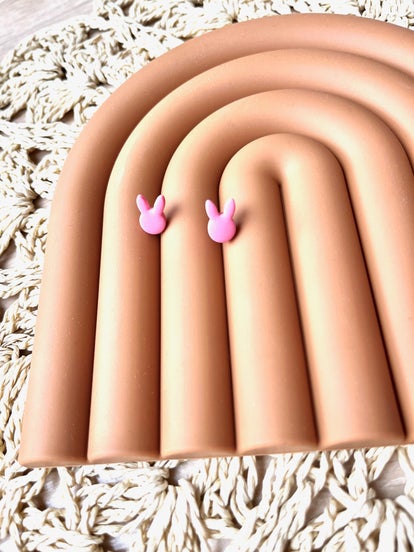 kleine konijntjes voor de kleinste oortjes. Ze zijn handgemaakt van polymeerklei en dus lichtgewicht. 1cm groot.