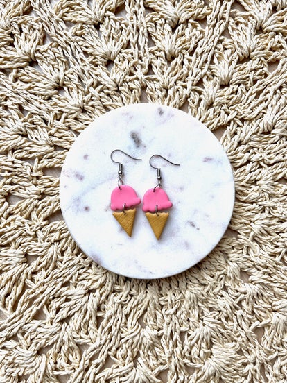 Niet om op te eten, maar lekkere ijsjes als oorbellen. Handgemaakt van polymeerklei met zilveren hangers. ze zijn ongeveer 3cm lang